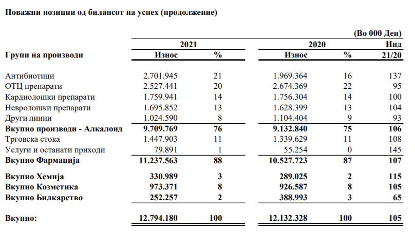 АЛКАЛОИД АД Скопје, во периодот јануари-декември 2021 година оствари позитивни финансиски резултати, искажани во неревидираните единечен и консолидиран биланс на успех