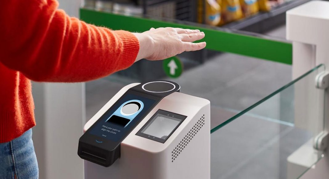 Неговиот неодамна воведен систем за биометрика на дланка, наречен Amazon One, штотуку започна со тестирање во две продавници во Сиетл и наскоро би можел да се појави во сите продавници, стадиони, концертни сали, згради и можеби за отклучување стан наместо отпечаток од прст, или скенирање на лице или очи.