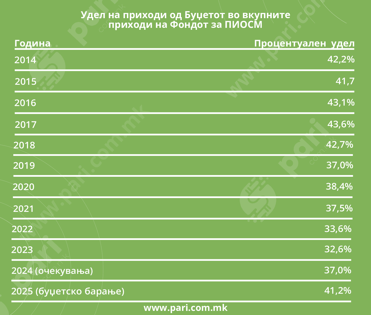 Во Буџетското барање на Фондот за ПИОСМ за 2025 година јасно е наведено дека се предвидува трансфер од буџетот во висина од дури 41,2 насто!