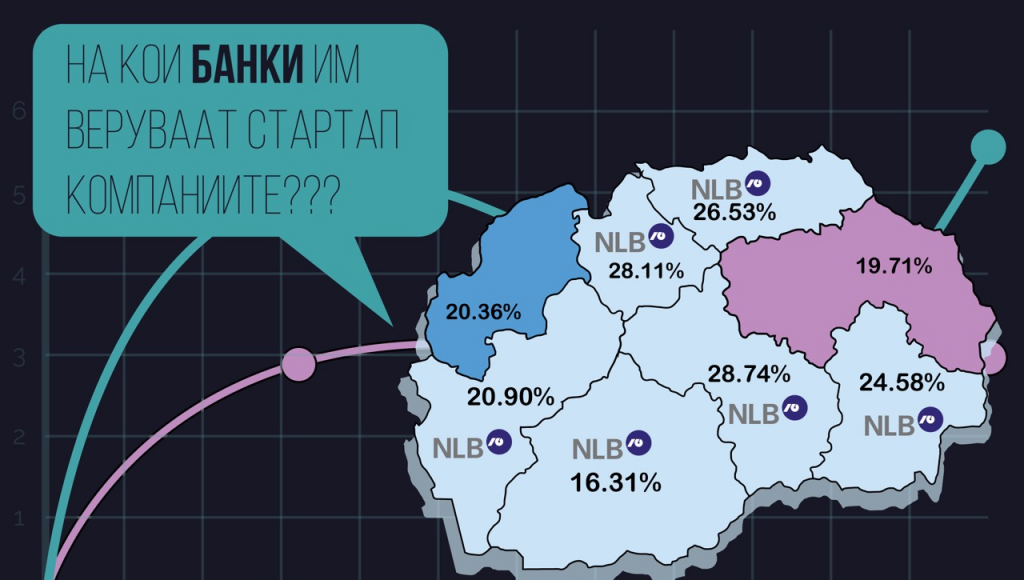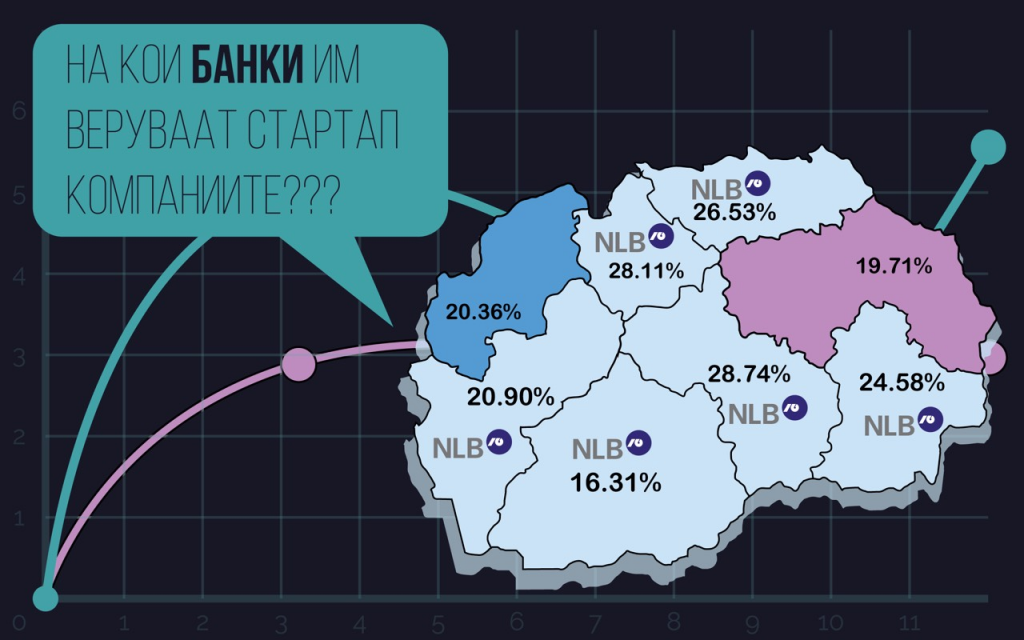 Анализата на податоците за банките што ги избрале новооснованите 32.193 фирми што се активни покажува дека во фокусот на претприемачите биле 14 домашни банки во коишто биле отворени меѓу 108 и 6.401 жиро-сметка. Најмногу нови бизниси, или 18,97 % од нив, одлучиле да отворат жиро-сметка во НЛБ банка АД Скопје.