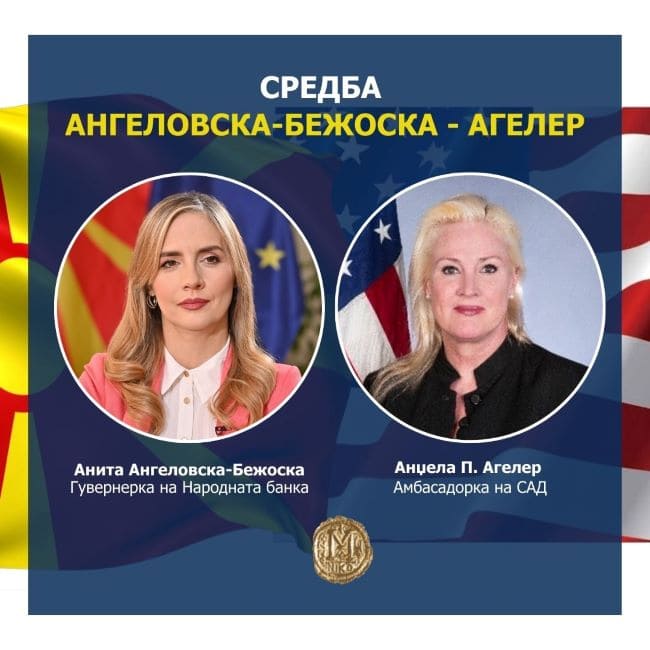 „Во услови на глобална неизвесност, монетарната политика придонесува со своите мерки за одржување на стабилноста на макроекономското окружување во земјава“, беше истакнато на средбата помеѓу гувернерката на Народната банка, Анита Ангеловска-Бежоска и амбасадорката на Соединетите Американски Држави во земјава, Ангела Агелер, при што беше нагласена високата доверба на јавноста кон Народната банка, дури и во периодот на кризи и премрежиња.