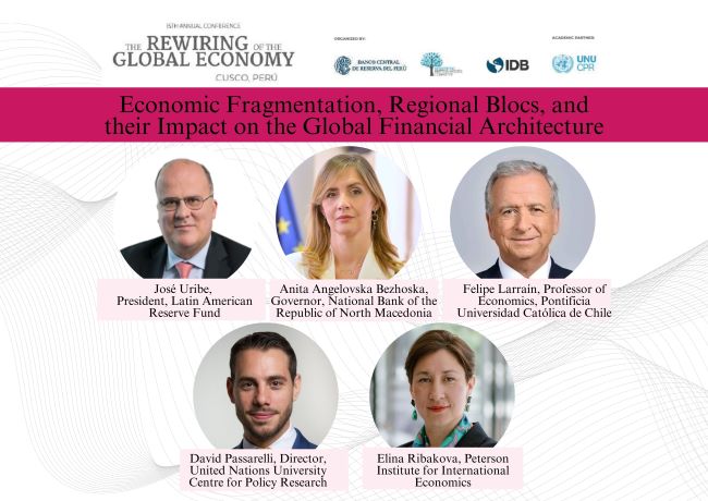Гувернерката Ангеловска-Бежоска учествуваше на панел-дискусијата „Економската фрагментација, регионалните блокови и нивното влијание врз глобалната финансиска архитектура“, заедно со Фелипе Лараин, професор по економија на Католичкиот универзитет во Чиле, Дејвид Пасарели, директор на Универзитетскиот центар за истражување на политиките на Обединетите нации, Елина Рибакова од Американскиот институт за меѓународна економија Петерсон, а претседавач на панел-дискусијата беше Хозе Урибе, претседател на Резервниот фонд на Латинска Америка.