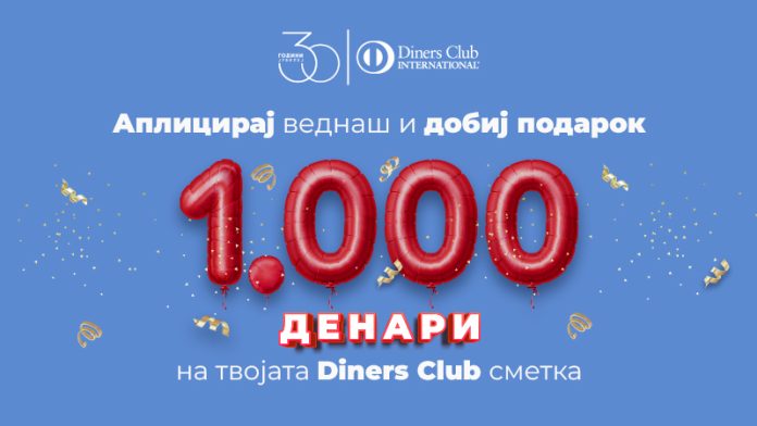 Сè уште не си член на Diners Club? „АПЛИЦИРАЈ СЕГА И ДОБИЈ УШТЕ ПОВЕЌЕ“ е новата кампања преку која Diners Club ќе додели подарок од 1000 денари за новите членови, по повод 30 години постоење на македонскиот пазар. Промотивната кампања се однесува за сите нови апликации кои ќе бидат одобрени во периодот од 1 до 30 април.