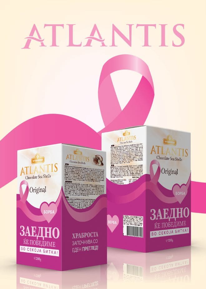 Чоколадните морски школки Атлантис добија розово издание со што дел од продажбата ќе биде наменет за пациентките со рак на дојка. Со облекувањето на Атлантис во розово, Витаминка ги помага жените кои се соочуваат со болеста и воедно влијае на зголемување на јавната свест за можноста од превенирање на болеста.