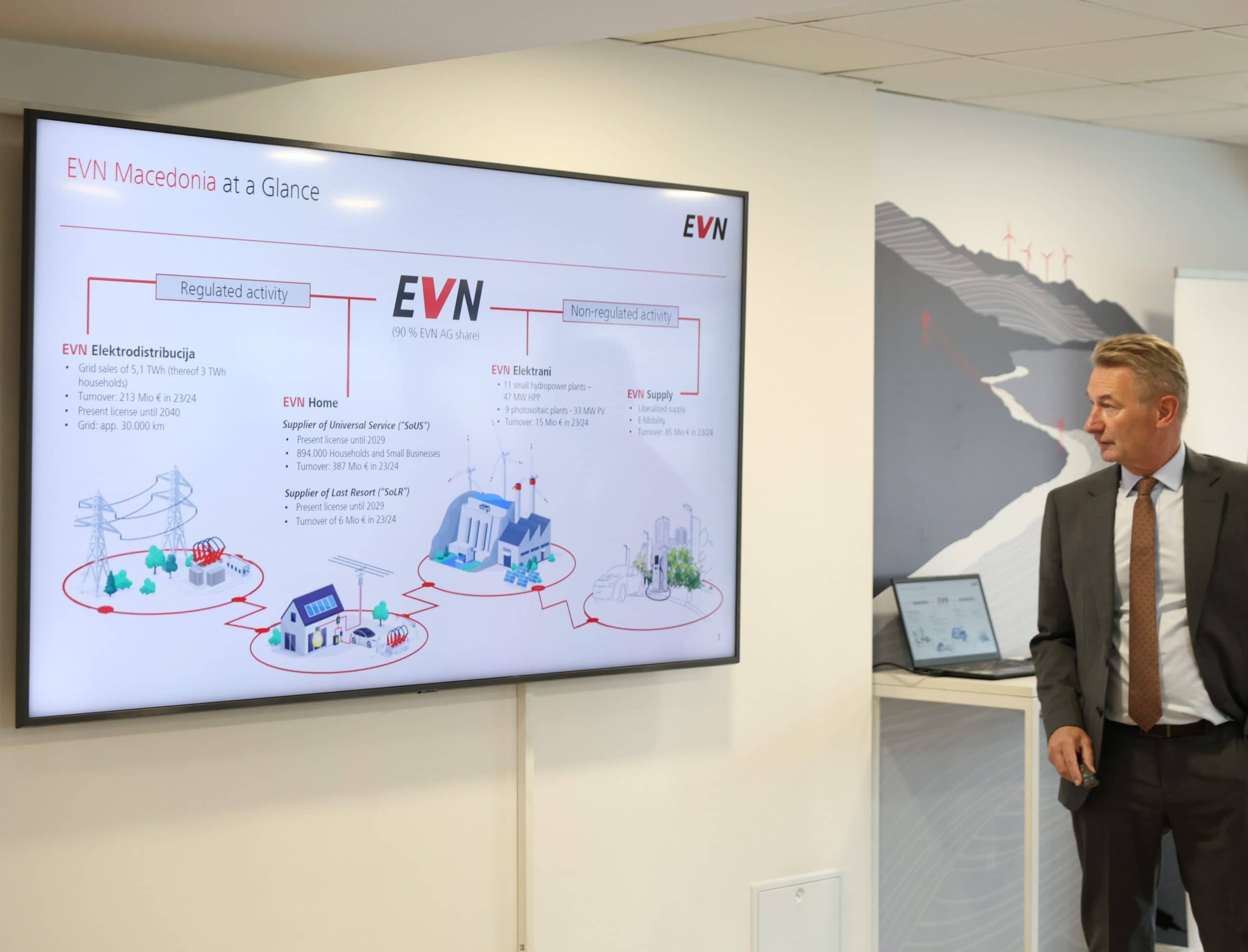 Во рамки на посетата беше истакната и долгогодишната соработка меѓу Австрија и Северна Македонија во областа на енергетиката, која претставува пример за успешна размена на знаење, искуства и добри практики. ЕВН Македонија, како дел од австриската EVN групација, останува посветена на инвестирање во модернизација, дигитализација и одржлив развој, со јасна цел – сигурна, ефикасна и зелена енергетска иднина за сите корисници