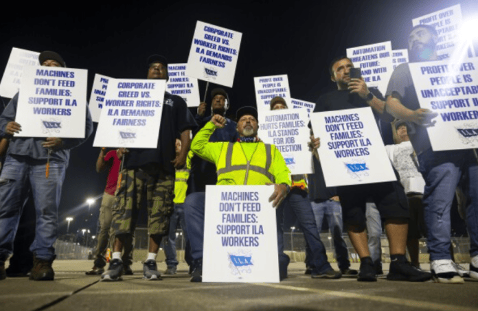 Штрајкот на пристанишните работници во САД трае веќе трет ден, а 45.000 пристанишни работници бараат зголемување на платите и забрана за автоматизација во нивниот следен договор.