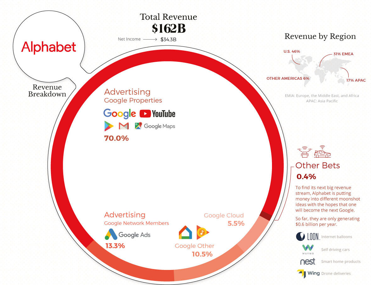 Приходите од рекламирање на Гугл се зголемија за 20 милијарди долари. Во меѓувреме, Гугл Cloud бележи континуирано усвојување и прерасна во свој сегмент од 8,9 милијарди долари.