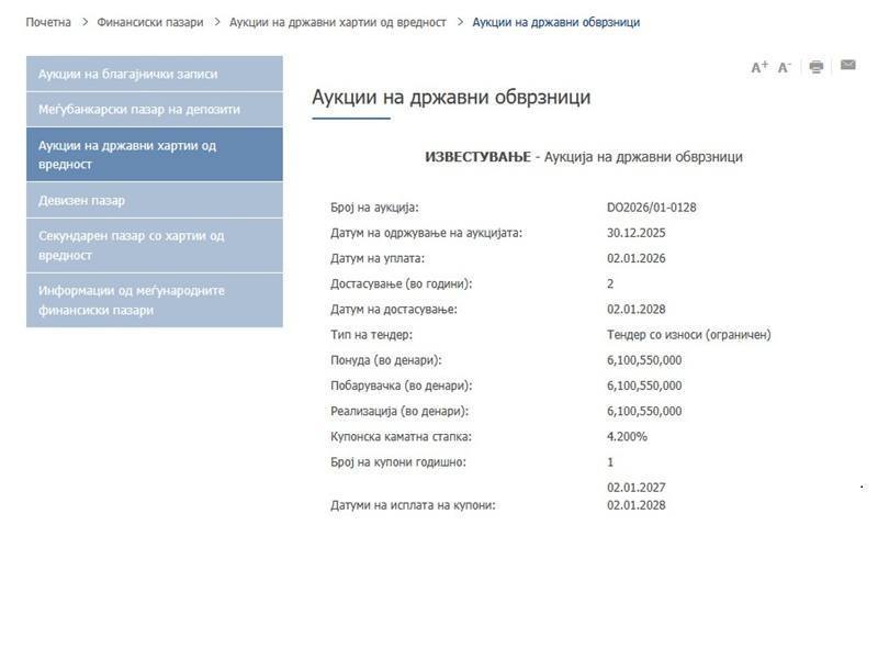 Кога планот за приходи не се исполнува, тогаш се позајмува и буџетската слика станува уште појасна. Вчера беше планирана аукција на државни обврзници од 4,4 милијарди денари, а денес се реализира во висина од 6.100.550.000 денари (100 милиони евра) — 1.700.550.000 денари (27,6 милиони евра) повеќе од тоа што беше вчера планирано.