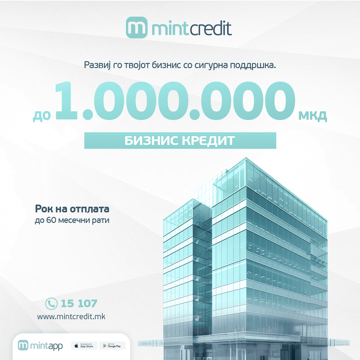Бизнис кредитот од Mint Credit е финансиски производ создаден за правни лица. Тој е дизајниран за да ви овозможи брз и лесен пристап до средства кои ви се потребни за инвестирање, проширување или едноставно за одржување на дневната ликвидност на вашето претпријатие.