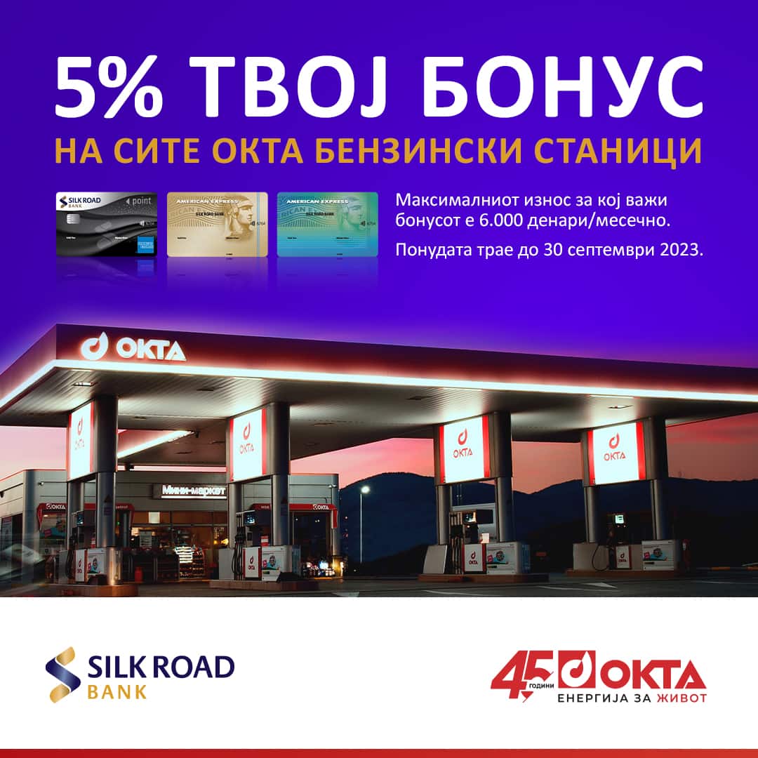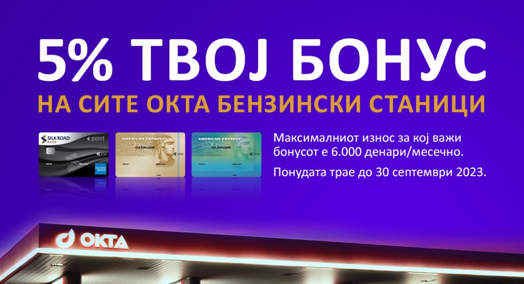 Со летната кампања „Твој Бонус” нова поволност за корисниците на American Express картички на Силк Роуд Банка АД Скопје, која нуди дополнителна можност за загарантиран поврат на средства, со секое купување на бензинските станици со брендот ОКТА.