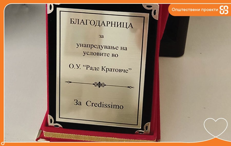 „Среќни сме што наставничката Ана Симонова од ОУ ‘Раде Кратовче’, нѐ контактираше и испрати барање до нас за да се вклучиме во овој проект за уредување и подобрување на условите во училиштето. Нашата компанија дава посебно значење на образованието и ние постојано ја истакнуваме неговата важност за развојот на секој поединец. Секогаш сме присутни и отворени за соработка и помош во сите институции каде што има потреба“ – изјавија од Credissimo.
