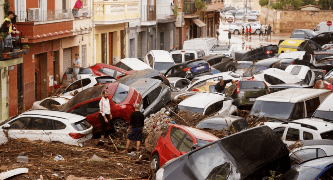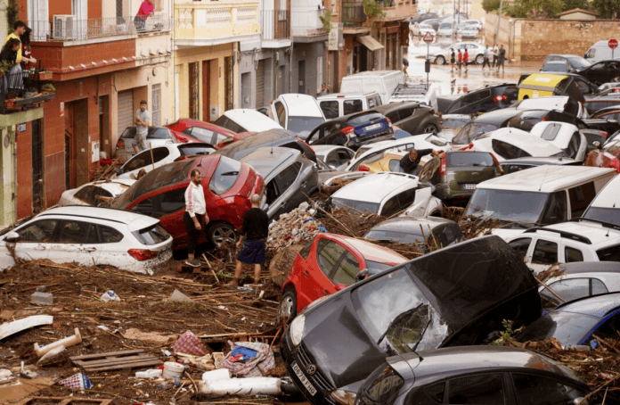 Море од натрупани автомобили и кал ги преплави улиците во Седави, предградие на медитеранскиот крајбрежен град Валенсија, видоа новинарите на АФП.
