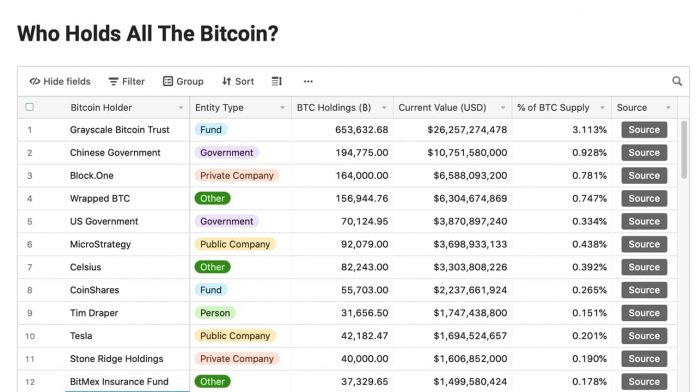 Веб-портал што прикажа список на наводни сопственици на целиот биткоин во светот е многу споделуван откако Кина го забрани тргувањето со крипто минатата недела. Веб-порталот тврди дека кинеската влада поседува 194.775 биткоин, кои наводно потекнуваат од крипто-измамата Плустокен. Проблемот со изворите на списокот е што проверката на сопственоста е крајно неубедлива и не нуди многу од тоа, освен шпекулациите.