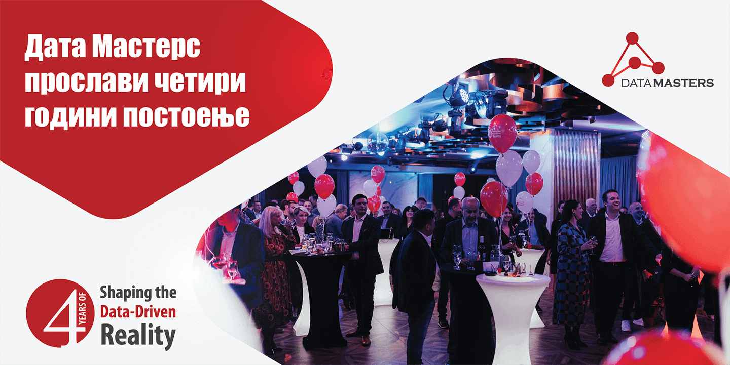 Првата консултантска Data Science компанија во Македонија со 100% македонски капитал, Дата Мастерс, го прослави четвртиот роденден во присуство на над 100 вработени, клиенти и соработници. Забавата воедно беше одлична можност да се споделат големи вести, односно отворањето на новата канцеларија во Лисабон, Португалија.