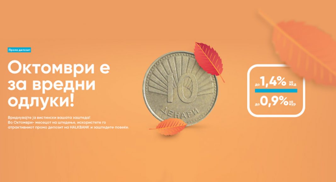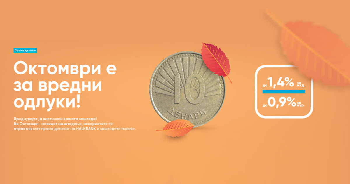 Во Октомври – месецот на штедење, искористете го атрактивниот ПРОМО ДЕПОЗИТ на Халкбанк АД Скопје и заштедете повеќе!