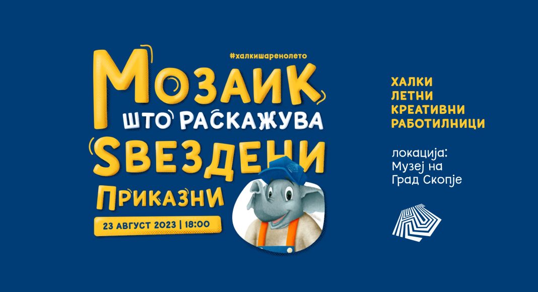 Бесплатна работилница за мозаик наменета за деца од 5 до 8 години во среда (23 август) во 18 часот ќе се одржи во Музејот на град Скопје во рамките на иницијативата „Халки шарено лето“ што ја организира Халкбанк АД Скопје. На работилницата „Мозаик што раскажува ѕвездени приказни“ малите учесници ќе работат на шаблони со природни материјали под менторство на искусни уметници.