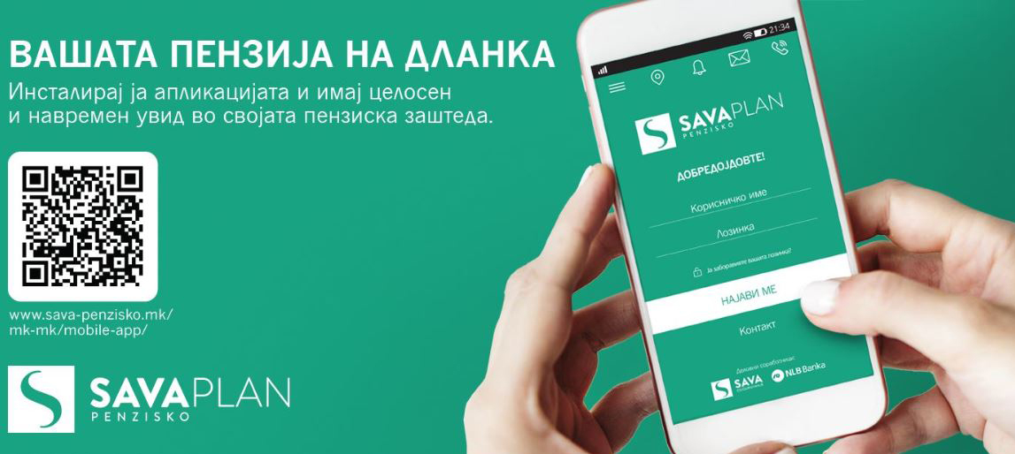Мобилната апликација Сава Пензиско План им нуди на нашите членови брз и транспарентен увид во нивната пензиска заштеда. Секој член во пензиските фондови Сава пензиски фонд и Сава пензија плус преку своето корисничко име и лозинка може да се најави на мобилната апликација и да ја дознае состојбата на својата пензиска заштеда. Членовите ги добиваат корисничкото име и лозинка во годишниот извештај кој им се доставува во зелен плик на нивната домашна адреса или електронската адреса.