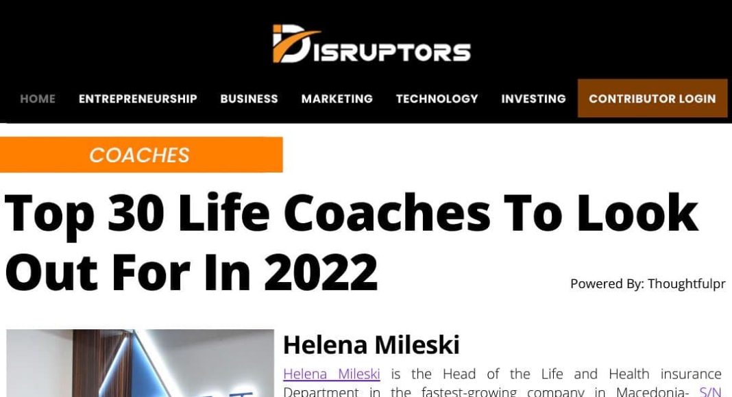 Disruptors магазинот ја вброи Хелена Милески од СН Осигурителен Брокер во топ 30 бизнис тренери за 2022 година