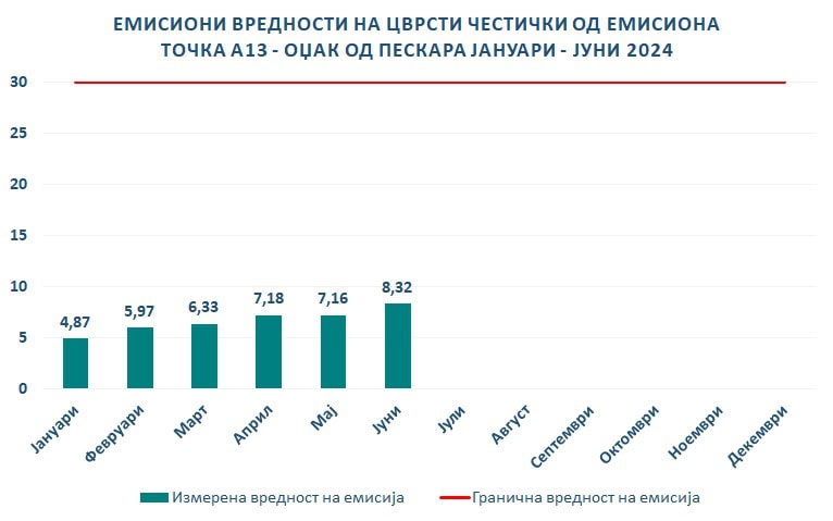Во прилог на ова соопштение е пресекот на емисионите вредности на цврсти честички од двете мерни точки во периодот од јануари до јуни 2024 година.