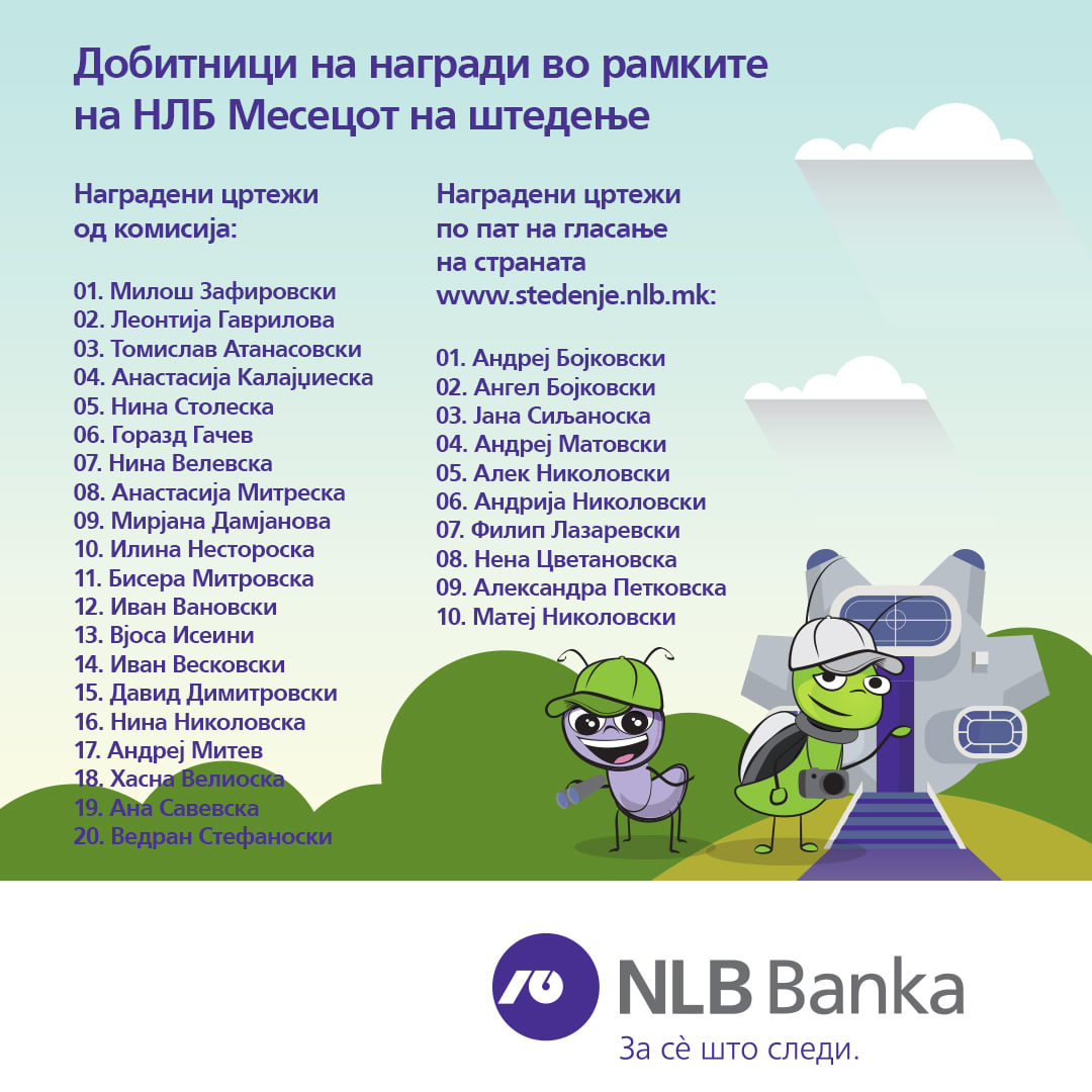 Во периодот од 25.09.2020 до 25.10.2020 година НЛБ Банка организираше Месец на штедење на кој децата имаа можност да цртаат на тема штедење и истражување на убавините на нашата земја.