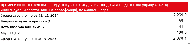 - Приходите од управување со средства (приходи од провизии) се зголемија за 10%, на 38,9 милиони евра.
