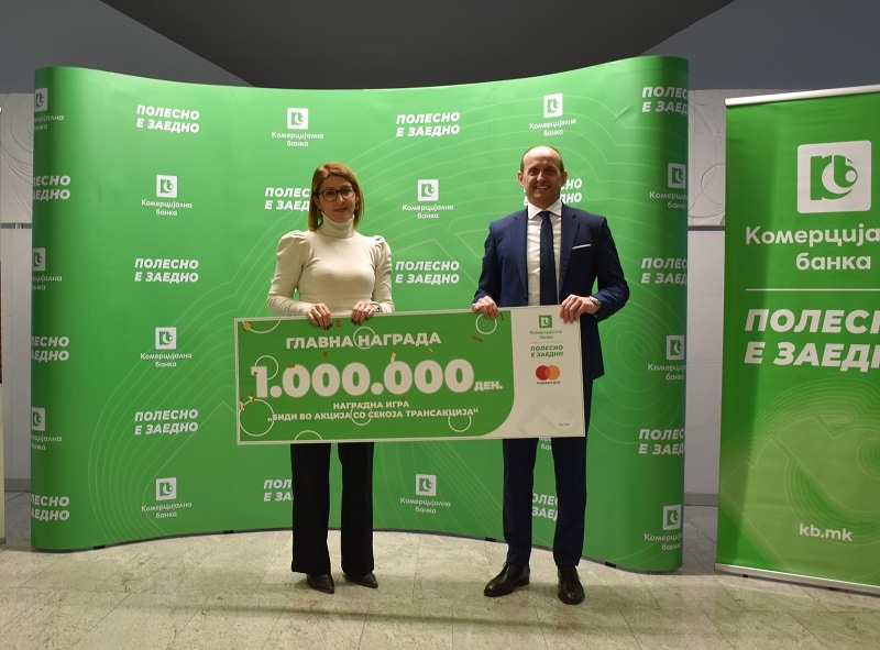Главната награда во вредност од 1.000.000 денари на среќната добитничка Славица З. од Скопје ѝ ја врачи д-р Никола Џамбазовски, Главен директор за продажба и развој и член на Управниот одбор на Комерцијална банка, со желба за уште повеќе радост и среќа во животот.