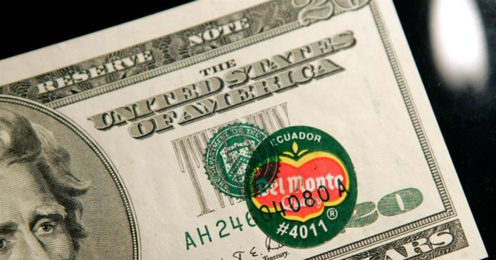 Поради грешка која настана при печатењето, ретка банкнота од 20 американски долари со ознака на еквадорскиот производител на банани „Дел Монте“ во моментов се продава на аукција од аукциската куќа Heritage Auctions.