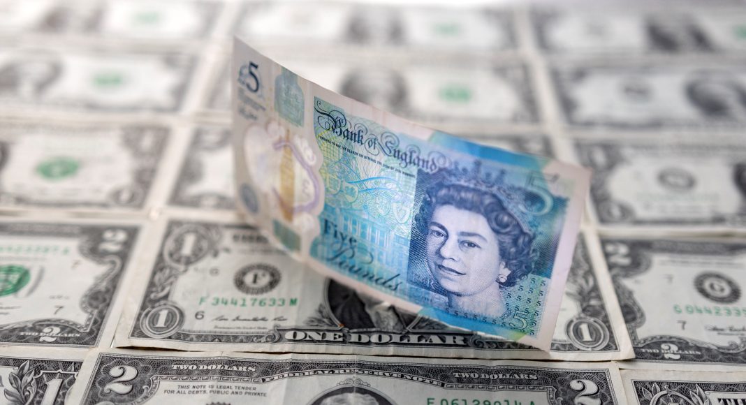 British pound banknote is displayed on U.S. Dollar banknotes in this illustration taken, February 14, 2022. REUTERS/Dado Ruvic/Illustration/File Photo