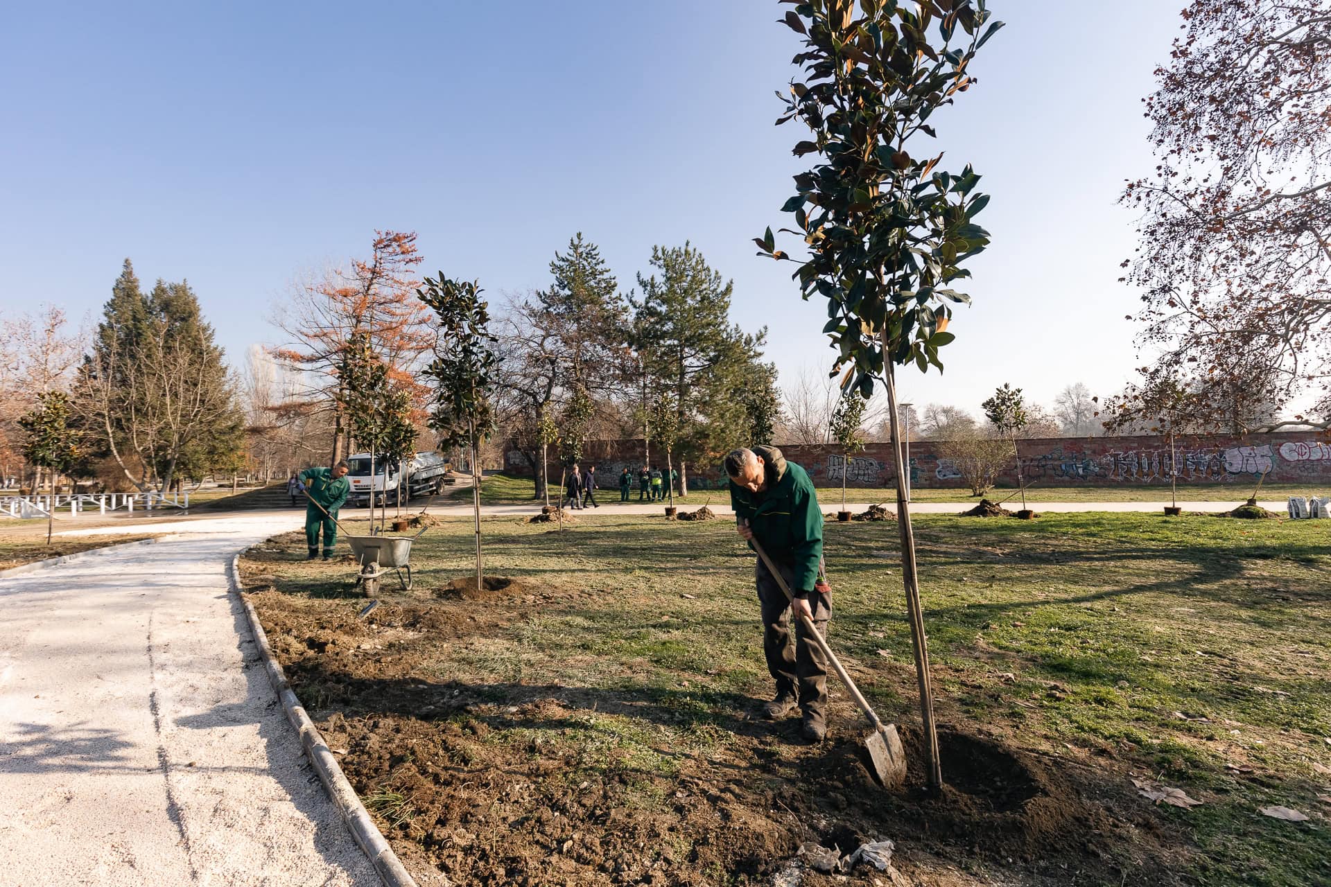Изведбата на паркот и засадувањето на дрвјата беше реализирана од ЈП Паркови и зеленило и ЈП Улици и патишта.