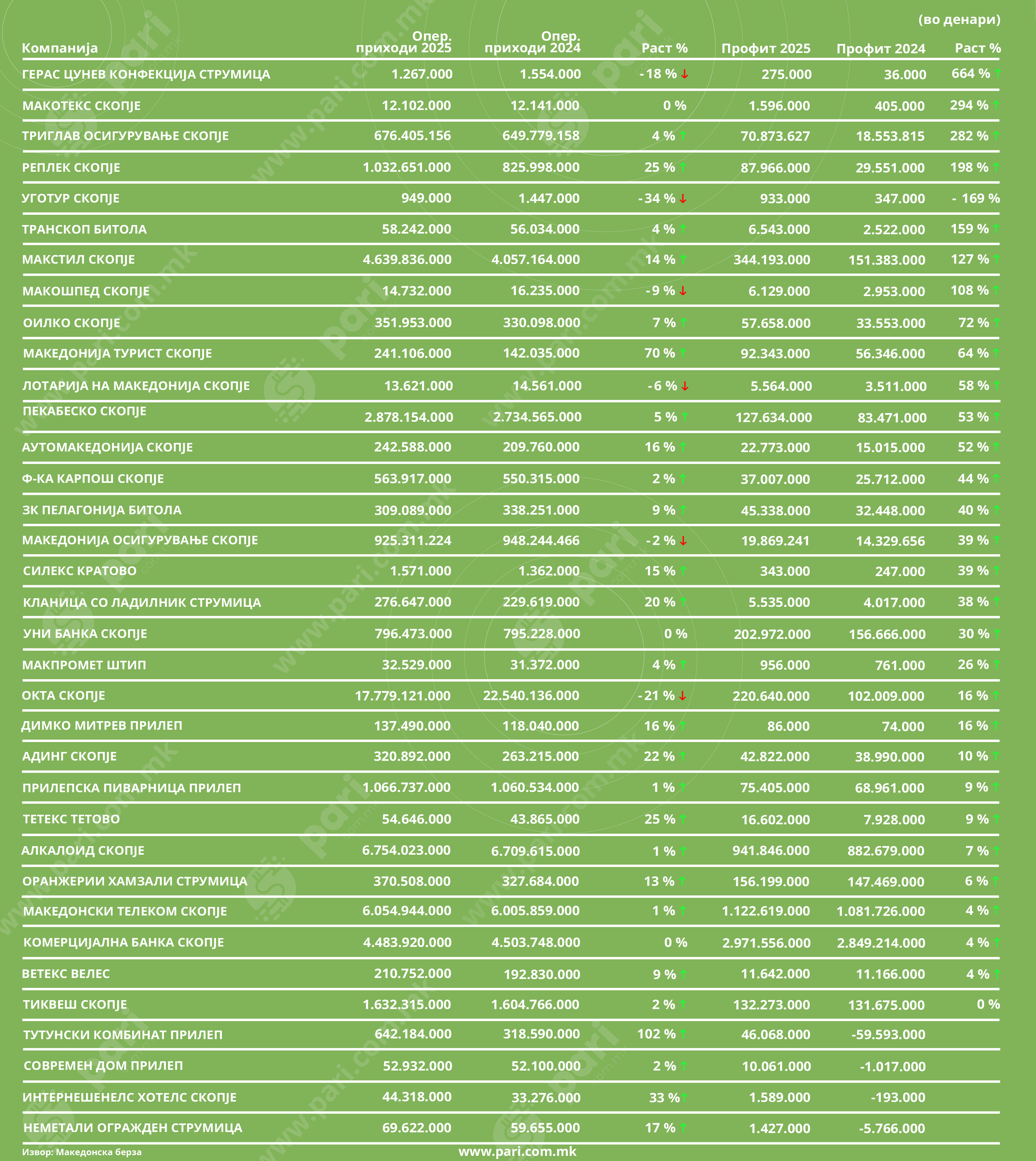 Компании со раст на профит во прво полугодие 2025 година во однос на прво полугодие 2024 година