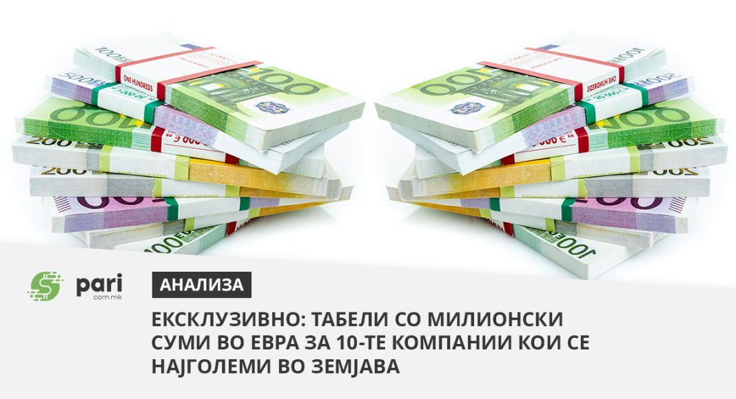 „Пари“ ексклузивно: Табели со милионски суми во евра за 10-те компании кои се најголеми во земјава
