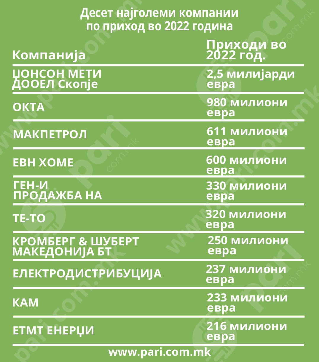 ПАРИ ЕКСКЛУЗИВНО: КОИ СЕ СТОТЕ НАЈГОЛЕМИ КОМПАНИИ ПО ПРИХОД во 2022 година?