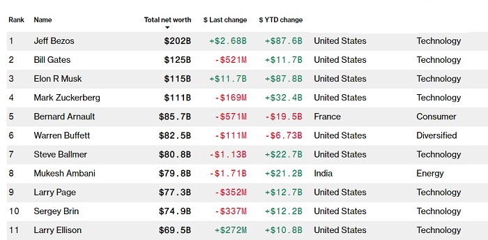 Безос е сè уште најбогатата личност на светот со 202 милијарди долари, но брзината со која расте богатството на Маск е шокантна.
