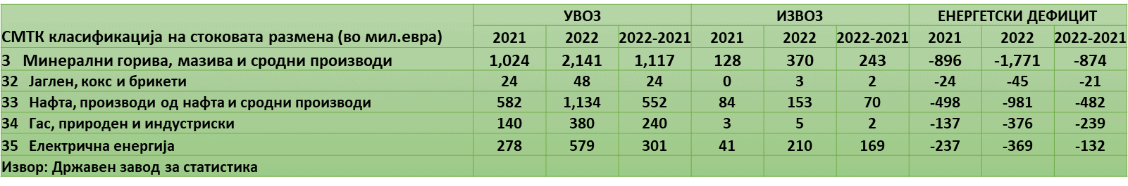 Македонија, односно приватниот сектор т.е фирмите и населението и во помал дел државата, плати фантастични 2.141 милион евра за увоз на енергенси и електрична енергија или околу 16,6% од бруто домашниот производ (БДП) во 2022 година, што е речиси двојно поголемо зафаќање на БДП од 2021 година (8,8%).