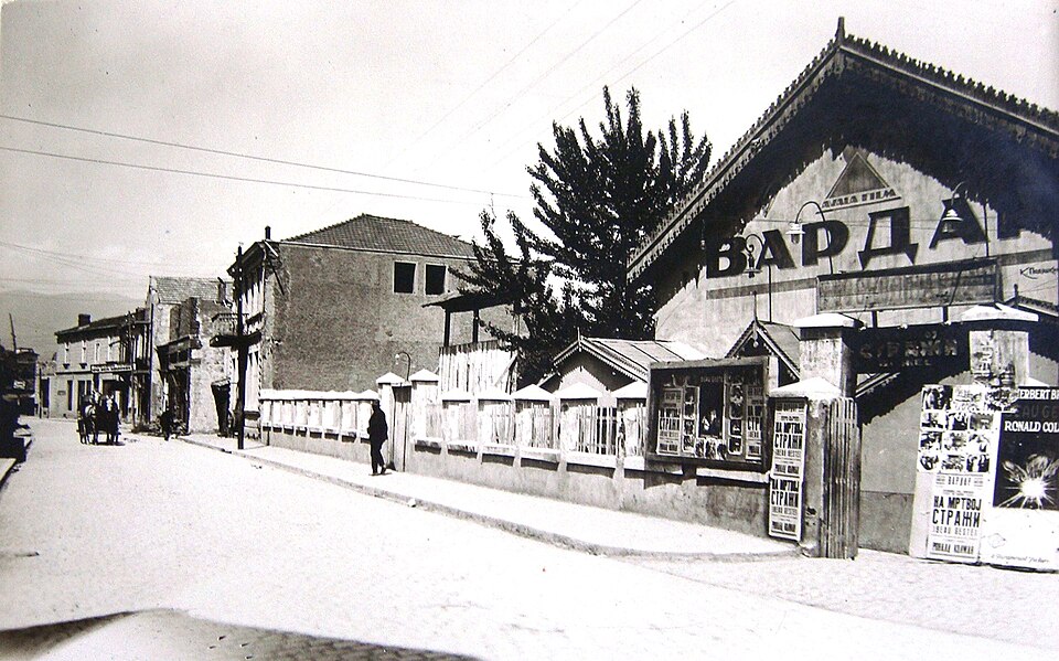 Може ли денес некој да поверува дека некогаш и во нешто Скопје заостанува(ло) зад светот само 17 години? Од актуелната перспектива, таа временска разлика се чини невозможна. Сепак, некогашно Скопје успевало да држи чекор со случувањата на глобалната сцена, и тоа во време кога немало ниту телевизија, ниту средства за брза комуникација. Првата јавна кинопроекција во светот, организирана од браќата Лимиер, се случила во Париз во 1895 година, пред крајот на деветнаесеттиот век. Седумнаесет години подоцна, на почетокот од втората деценија на дваесеттиот век, Скопје го добило првото кино на просторот каде што се наоѓа Домот на армијата. Имало 500 седишта и име Вардар.