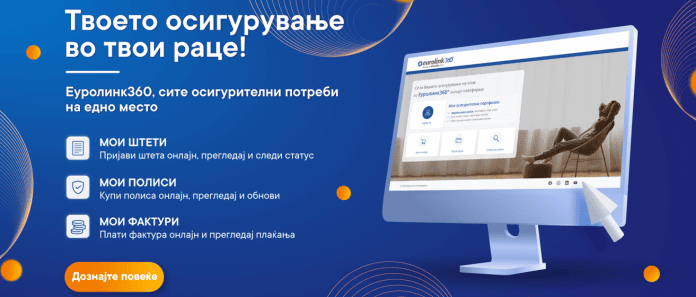 Со задоволство го објавуваме лансирањето на новата онлајн платформа Еуролинк360о, дизајнирана да им овозможи на нашите клиенти целосен увид и безбедно управување со сопственото осигурително портфолио. Оваа современа платформа обезбедува лесно и брзо онлајн пријавување на штети по сите полиси, пратење на статусот на пријавената штета онлајн во реално време, целосен преглед на сите фактури и управување со начините за плаќање, обнова на полиси како и унапредување на функциите што веќе беа достапни за нашите клиенти – усовршен систем за е-плаќање и нов, јасен и брз веб шоп за е-полиси. Сите овие функционалности ги претставуваат сите осигурителни потреби на нашите клиенти – сега достапни на едно место. Оттука произлезе и името на платформата, односно симболиката на 360 степени, што асоцира на целосно заокружено подобрено искуство, во секоја точка од нашите достапни услуги.