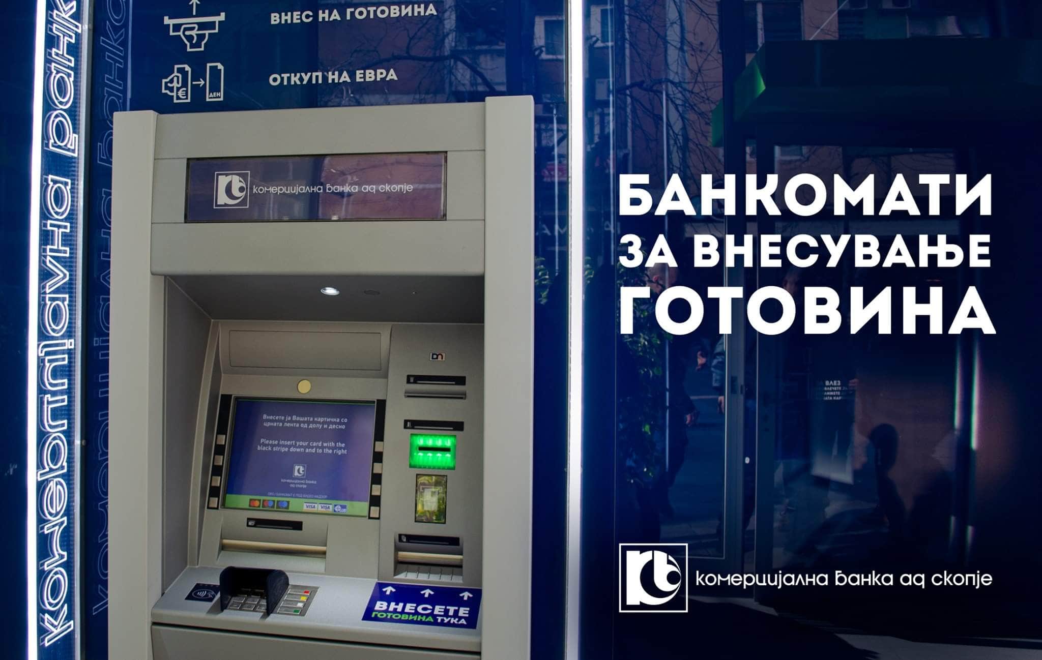 Cash-in банкоматите на Комерцијална Банка АД Скопје се достапни 24/7, а парите на клиентите им се на располагање секаде и во секое време, информираат од оваа банка. Банкоматот ги прифаќа сите банкноти во апоени од 10, 50, 100, 200, 500, 1.000 и 2.000 денари. Со секоја поединечна трансакција може да се внесат до 40 банкноти, се наведува во информацијата на Комерцијална, каде се наведени и локациите на cash-in банкоматите.