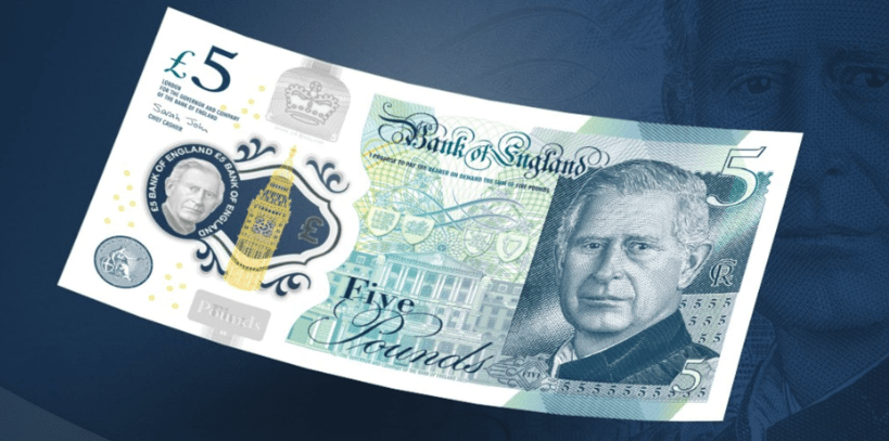 Првите слики на банкноти со ликот на британскиот крал Чарлс III вчера беа промовирани од страна на Банката на Англија. Портретот на Чарлс ќе се појави на англиските банкноти од 5, 10, 20 и 50 фунти. Во меѓувреме, остатокот од дизајнот ќе остане ист како и сегашните банкноти на кои е прикажана покојната кралица Елизабета Втора на предната страна. Камеото во проѕирниот безбедносен прозорец ќе го прикажува актуелниот монарх, се вели во соопштението за печатот на Централната банка на Обединетото Кралство.