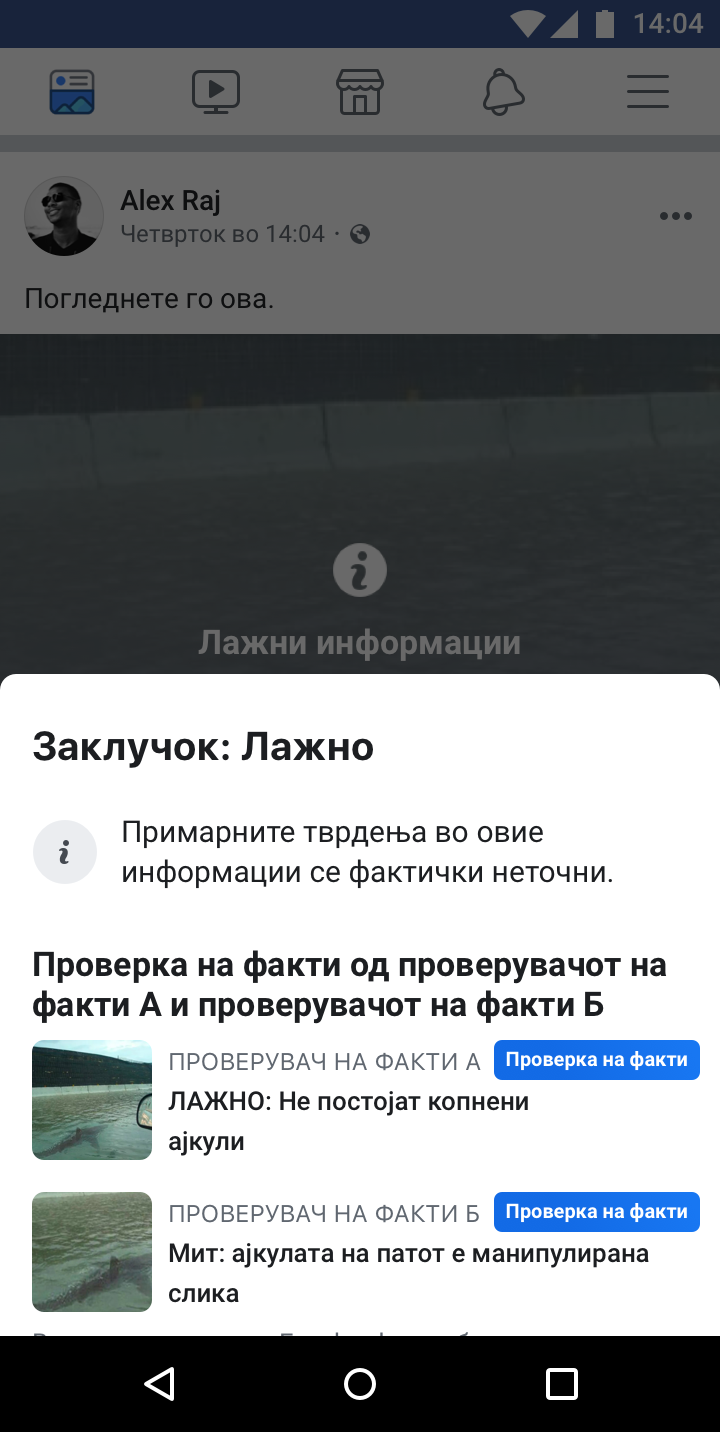 Фејсбук има преку 70 партнери за проверка на факти на повеќе од 50 јазици на глобално ниво и секојдневно инвестира во начини за понатамошно развивање на овие напори.