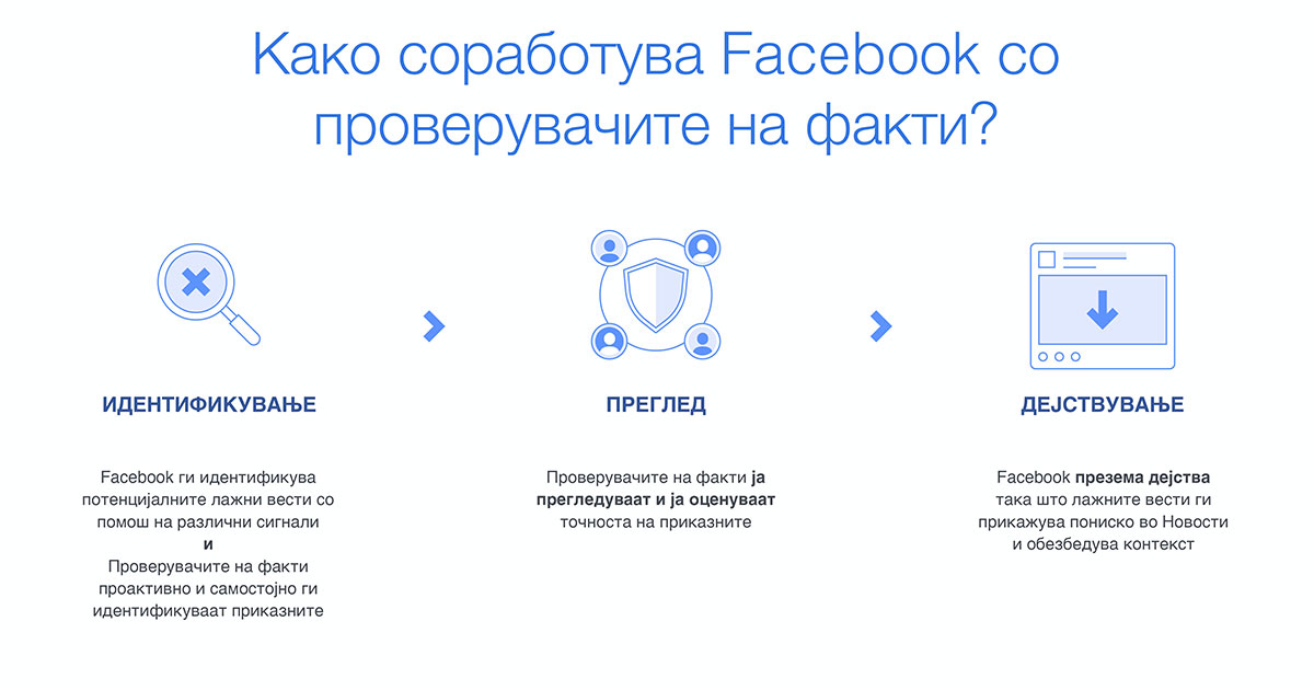 Како дел од борбата против дезинформациите на Фејсбук, компанијата оствари соработка со независни проверувачи на факти од трети страни ширум светот, кои ја прегледуваат и оценуваат точноста на содржината. Денес беше најавено започнувањето на програмата за проверка на факти од трети страни во Северна Македонија со Вистиномер (Фондација Метаморфозис). Исто така, оваа програма започна и во регионот, односно Босна и Херцеговина, Црна Гора и Србија, како и нејзино проширување во Хрватска. Сите партнери на програмата се сертифицирани преку непартиска меѓународна мрежа за проверка на факти.