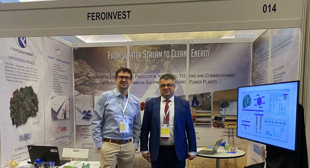 Тодор Анѓушев, директор на фирмите ЕМС и „Мали хидро електрани“, во рамките на ФЕРО ИНВЕСТ и Филип Андрески, директор за развој во групацијата, ги запознаа посетителите на саемот со можностите на ФЕРО ИНВЕСТ како партнер во изведувањето на енергетски проекти, прикажувајќи го портфолиото од реализирани над 120 електрани, од кои над 60 се поврзани директно со мали хидроелектрани.