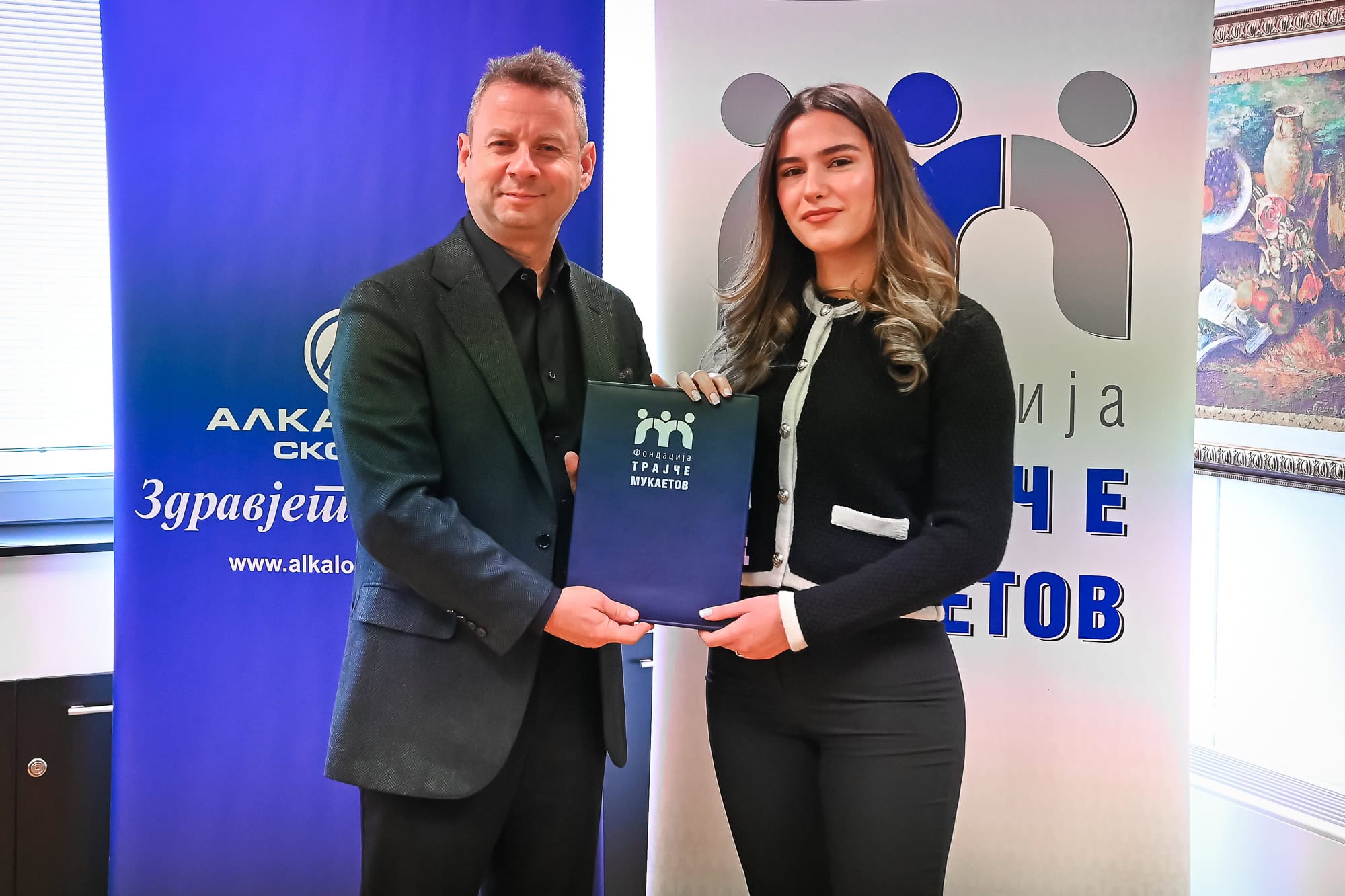 „Вложувањето во млади таленти од сферата на науката, особено во делот на фармацијата и медицината, е долгорочна инвестиција во поздраво општество. Фондацијата ’Трајче Мукаетов’ во изминатите 17 години е дел од успешната академска приказна на 699 стипендирани студенти на државниот универзитет во Скопје. Навистина ми е драго што досега 110 oд стипендираните студенти одлучиле да започнат да ги градат своите кариери во некои од одделите на ’Алкалоид’. Високата селективност при ангажирањето стручен кадар и континуираните вложувања во истражување, развој и нови технологии и постојаното стручно надоградување придонесоа ‘Алкалоид’ денес конкурентно и достоинствено да се носи на глобалниот фармацевтски пазар“, изјави г. Живко Мукаетов, Претседател на Фондацијата „Трајче Мукаетов“ и Генерален директор на компанијата „Алкалоид“ АД Скопје.
