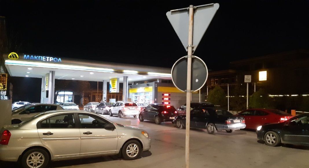 По брашното и зејтинот, граѓаните вечерва навалија и на бензинските станици. Колони од автомобили се создадоа пред бензинските станици, сите чекаат резервоарот со гориво да го наполнат до врв. Дел од нив разочарано коментираа дека на бензинските не им дозволиле да наточат гориво колку планирале, бидејќи според кажувањата на вработените добиле наредба од газдите за ограничување на наточените литри.