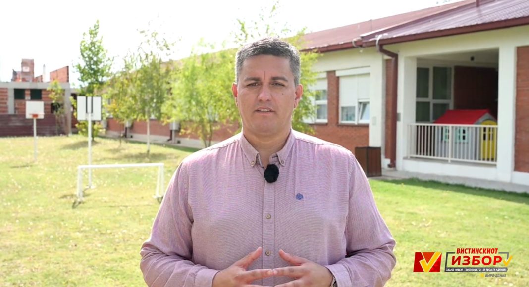 Затоа, ќе изградиме нова детска градинка, со цел да им помогнеме на семејствата да добијат поголема достапност на квалитетна предучилишна грижа. Современи и безбедни простории за згрижување, и развој на дечињата“.
