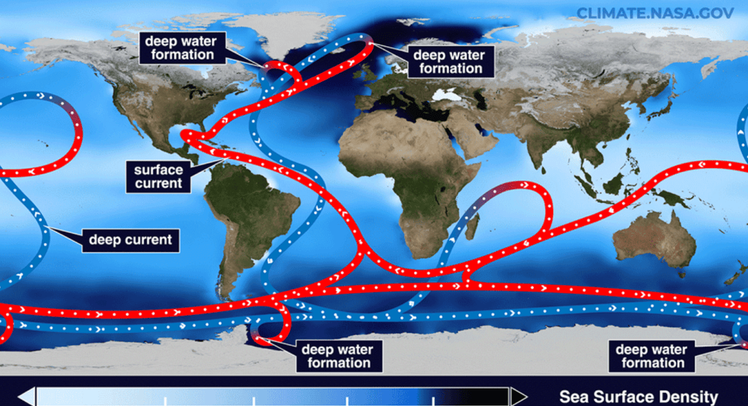 Опишана како „транспортна лента на океанот“, AMOC транспортира топла, солена вода во близина на површината на океанот кон север од тропските предели до северната хемисфера. Ова е клучно за одржување на Европа, Велика Британија и источниот брег на САД во „умерена“ состојба – што значи ниту многу топла ниту многу ладна.