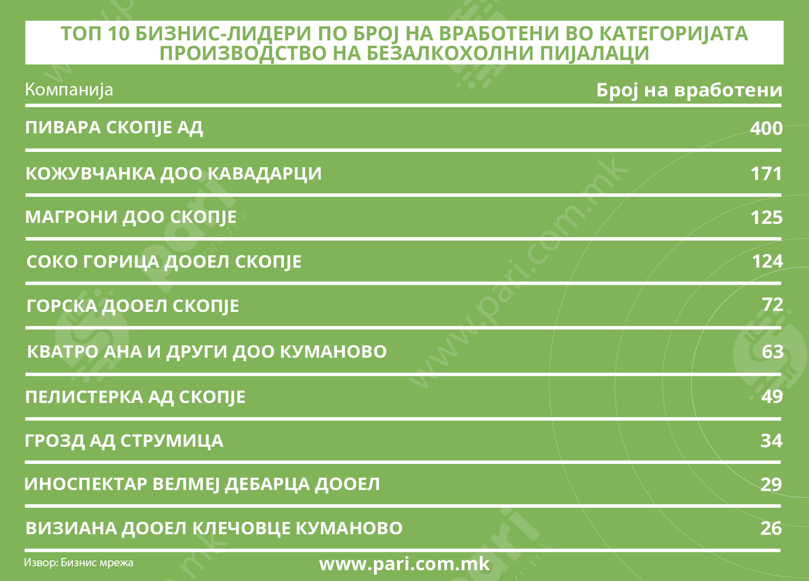Кожувчанка со 171 вработен, Магрони со 125 и Соко Горица со 124, потврдуваат дека средните компании се значаен дел од индустриската мрежа.