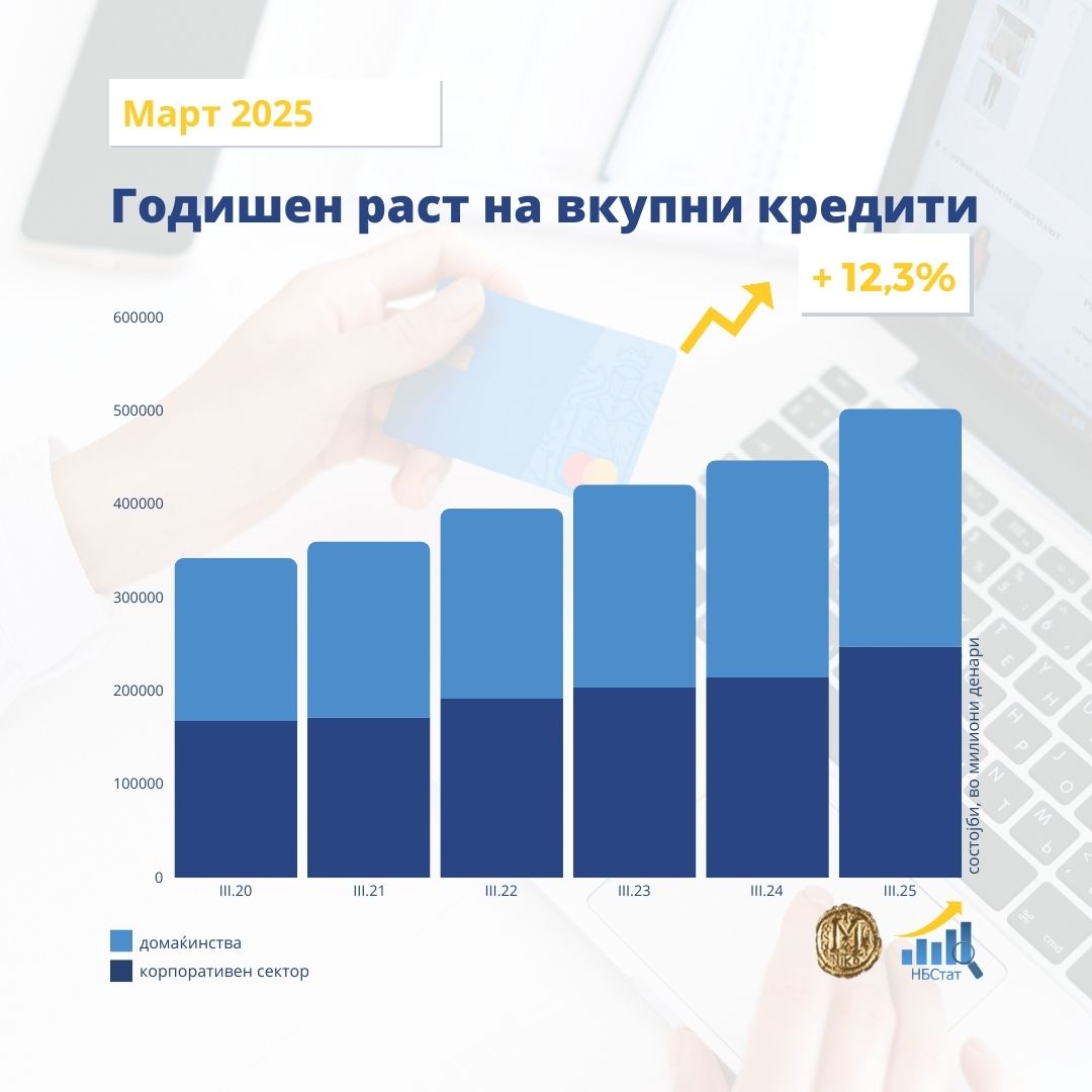 Потребата за пари на компаниите во март ги зголемила кредитите за 0,9%. Вкупната сума што ја имаат на користење е 247.077 милиони денари (4,01 милијарда евра). Годишната промена се означува со 15,3%. Движењата во целост произлегуваат од повисокото кредитирање во денари, во услови на пад на девизните кредити.