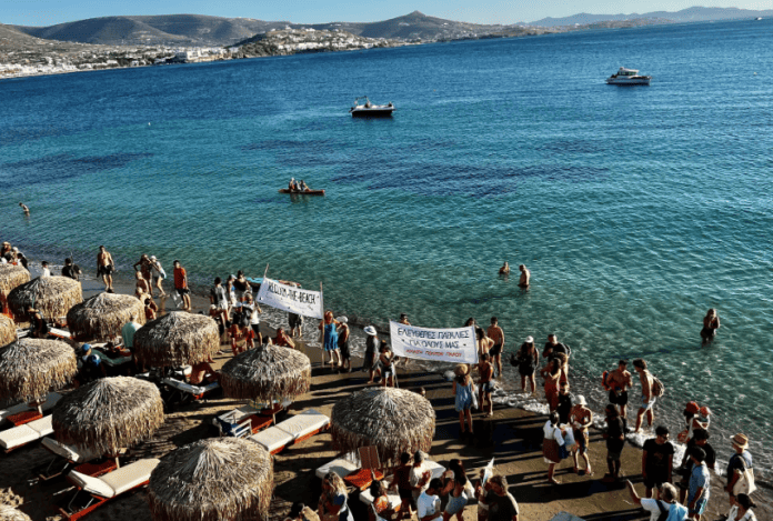 Според грчките закони, нема приватни плажи. Сепак, узурпацијата на плажите од страна на концесионерите со години била толерирана. Во мај годинава, Врховниот суд на Грција испратил меморандум до обвинителите во кој повтори дека останува нелегално да се блокира пристапот до јавните плажи и дека оние што ги прекршуваат правилата треба да бидат санкционирани.