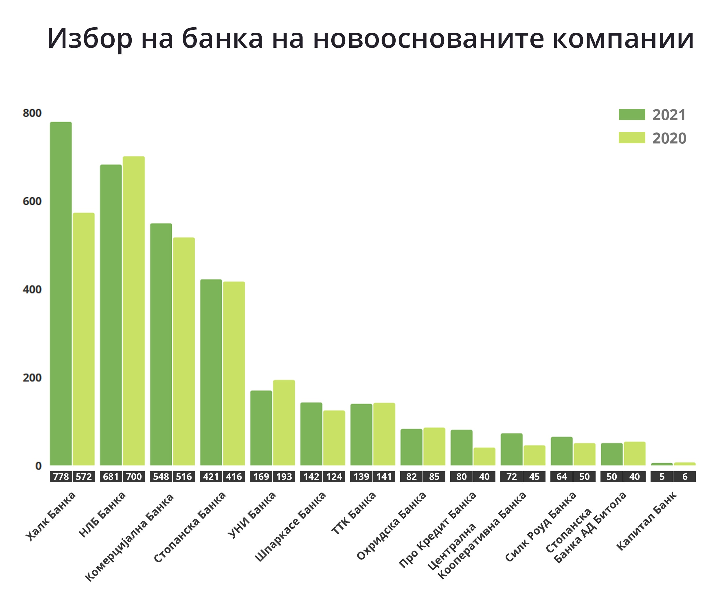 - Најголем добитник во 2021 година е Халк Банка, која успеала да привлече 206 новоотворени компании повеќе отколку во 2020 година.