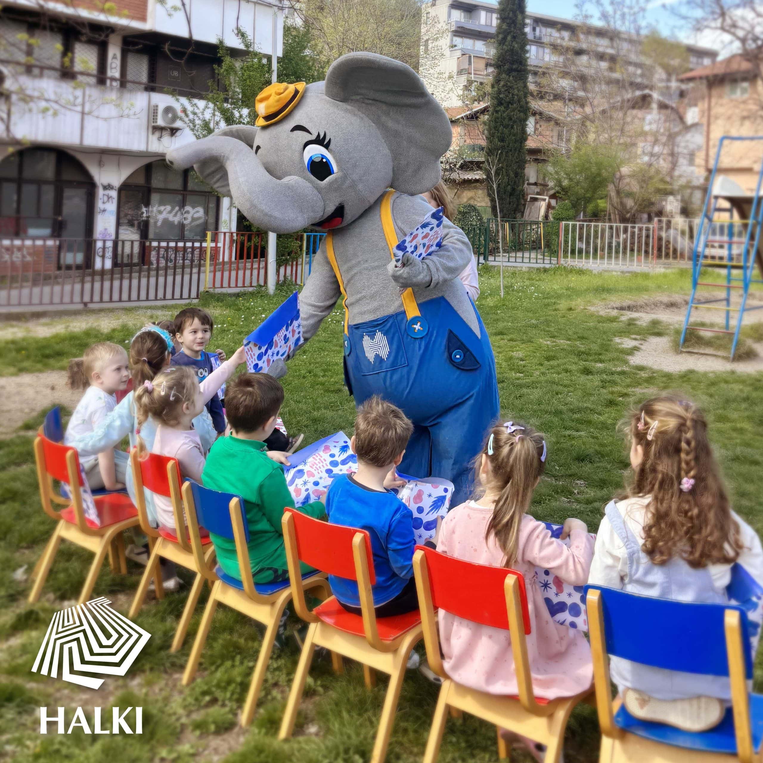 Во убавата атмосфера на празничниот ден, маскотата Халки ги израдува децата со неверојатни халки пакетчиња, пренесувајќи го духот на добрата приказна и читањето.